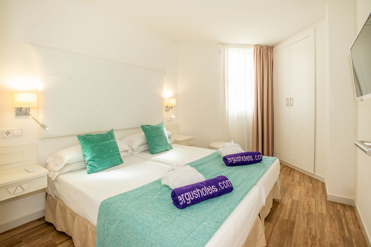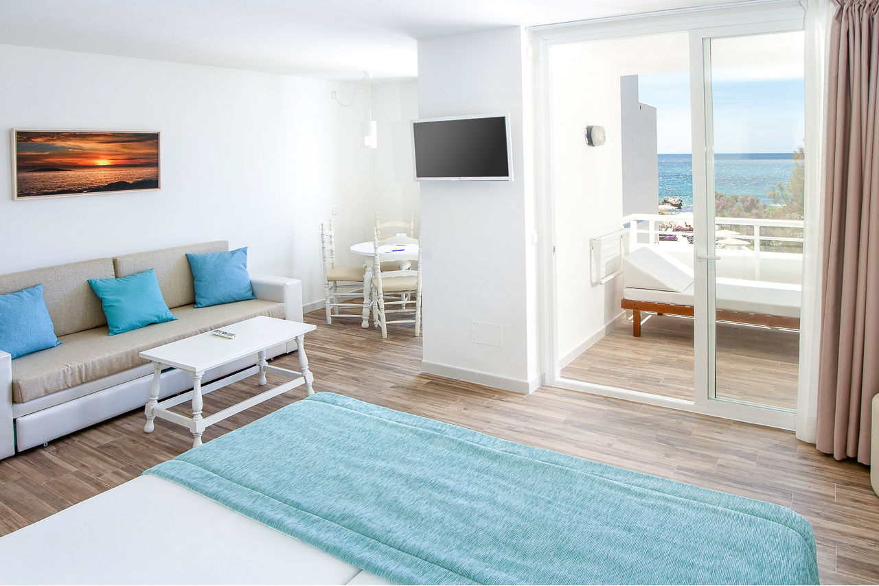 Suites sleep up to 3 adults and 2 children and have bathroom containing a bath with shower attachment, air conditioning, hairdryer, flat screen television, sunbeds, safety deposit box*, Wi-Fi and balcony or terrace. Superior suites which have a premium location and include Playstation 3, Family suites, Superior Family suites and Sole Use suites are also available.