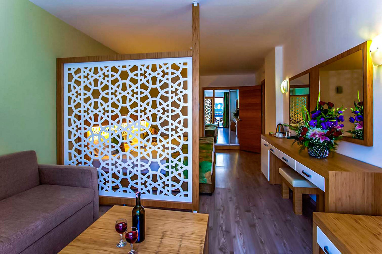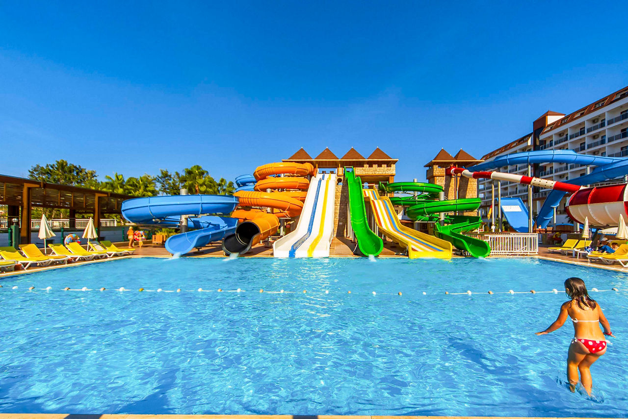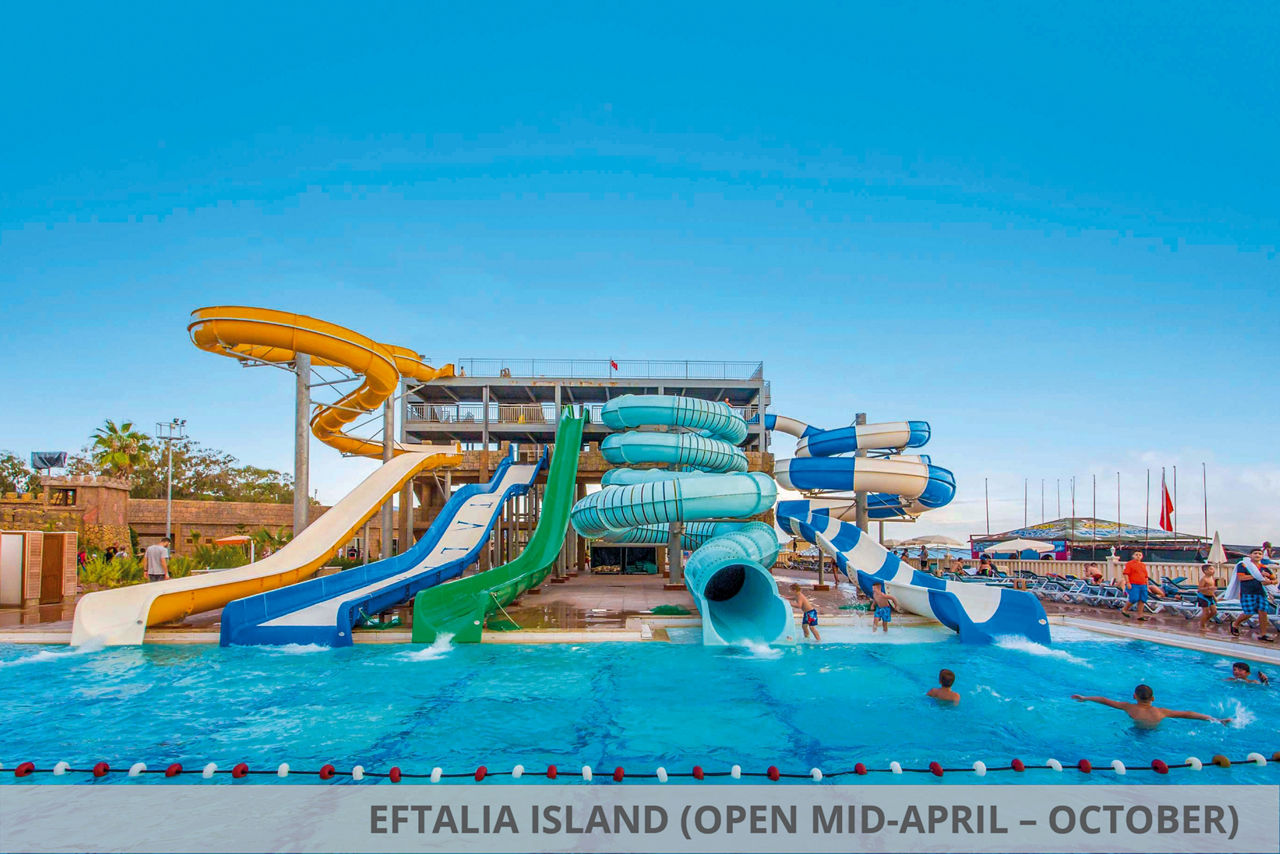 Eftalia Splash Resort is a haven for families. With an on-site aqua park, children's club and plenty of daytime activities to enjoy there is plenty to keep all ages entertained. If that's not enough, hop on the shuttle bus to Eftalia Island beach complex where you'll find even more waterslides and splash areas for the little ones, plus evening entertainment in the amphitheatre. The All Inclusive package makes mealtimes super easy, and it even extends to Eftalia Island! For a great value, fun-filled holiday with the family, this is the perfect choice.Standard double and twin rooms sleep 2 adults and have bathroom containing a shower, air conditioning, hairdryer, safety deposit box*, flat screen television, kettle, mini bar* and balcony. Room upgrade options are also available.