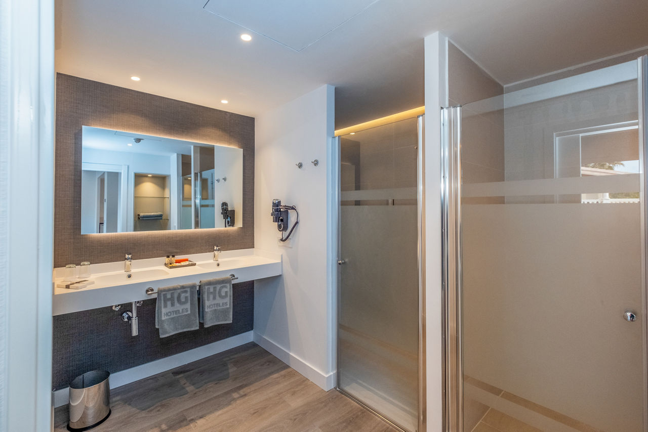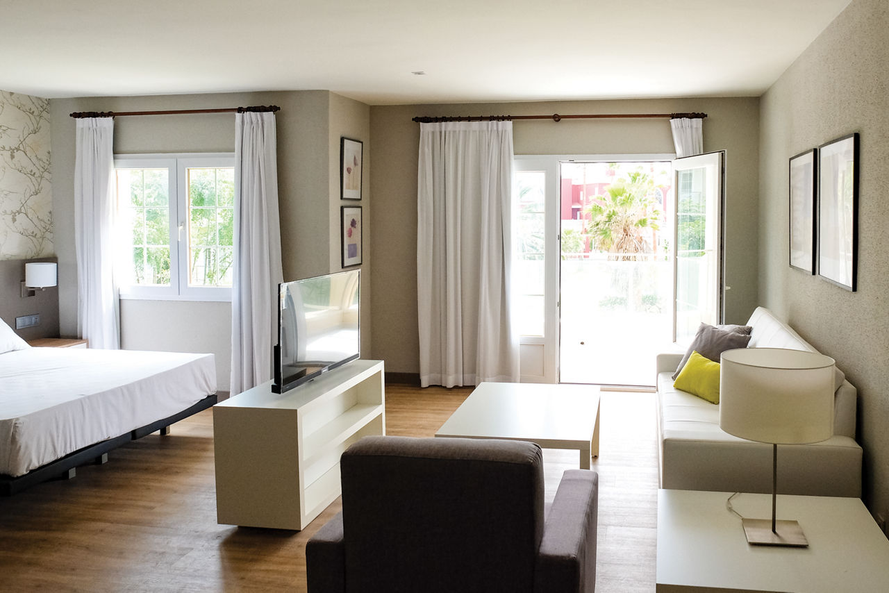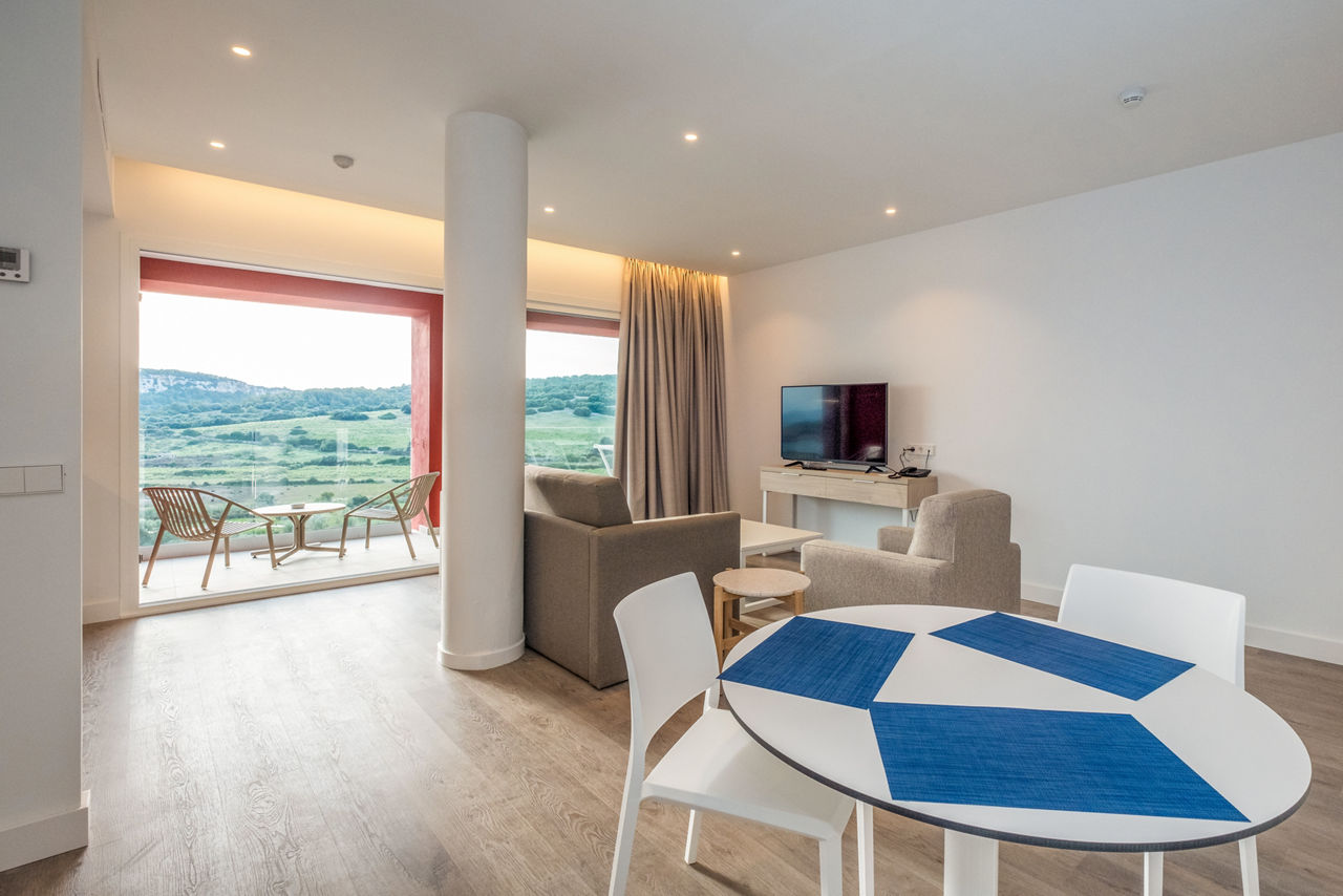 Perched above the resort of Son Bou and providing stunning views, Aparthotel HG Jardin de Menorca is a fantastic family option on the relaxed island of Menorca. Surrounded by well-maintained spacious gardens and rustic countryside, this attractive property is ideal for doing as much or as little as you like. There is a wide range of facilities to suit all ages and the longest beach in Menorca is easily reachable thanks to the hotel?s complimentary bus service.Junior suites sleep up to 3 adults or 2 adults and 2 children and have bathroom, air conditioning, hairdryer, television, double cooking rings, fridge, kettle, toaster and balcony or terrace.