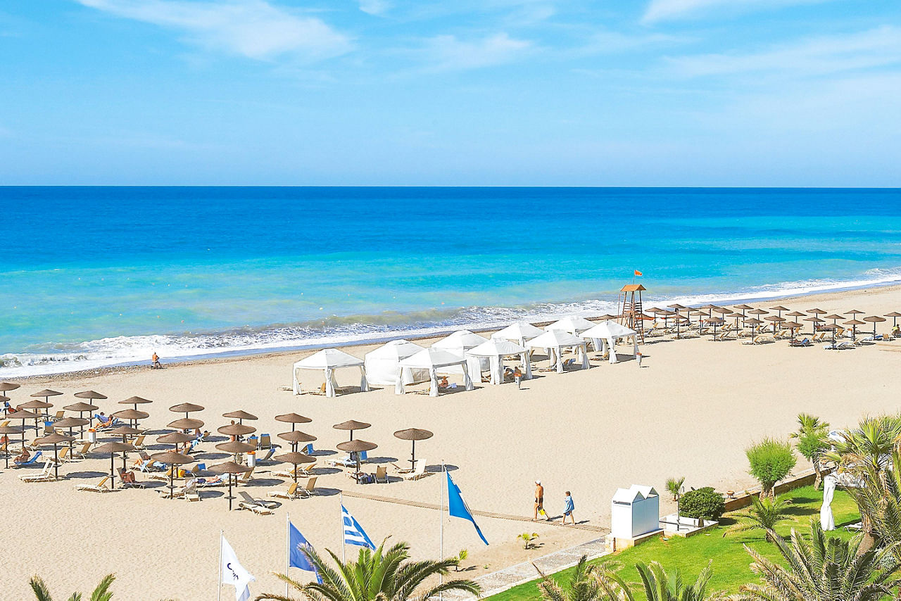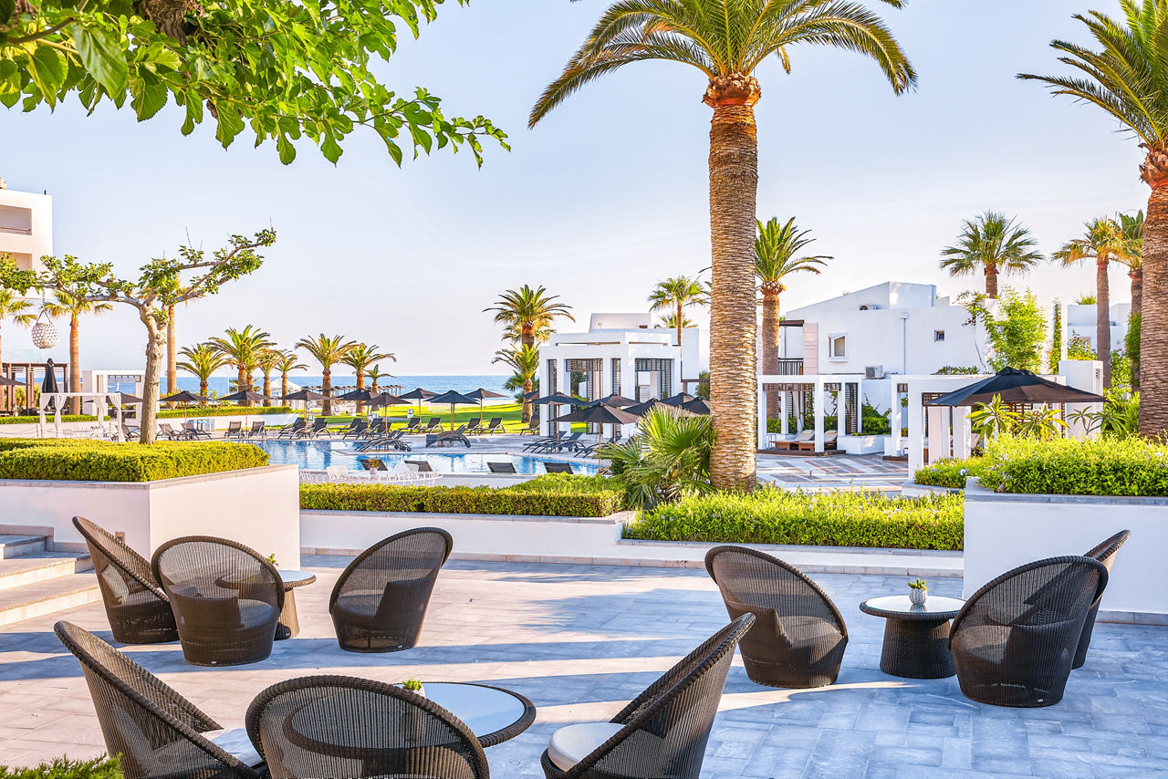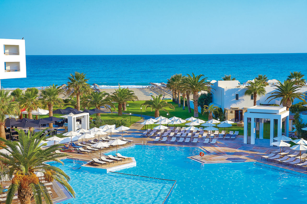Located on a peaceful beachfront spot, the Grecotel Creta Palace offers plenty to please both couples and families. Days can be spent lazing around the large outdoor pool that?s centrally located within the complex. It?s surrounded by mature and pretty gardens, making this an ideal spot for relaxation. The kids will also love having their own pool that comes complete with a couple of waterslides for splashing around. Evenings can be spent in one of the hotels four restaurants and four bars, or for something a little livelier, Rethymnon resort centre with its Venetian Harbour and plethora of bars, cafes and restaurants is a short drive away.Location And Resort