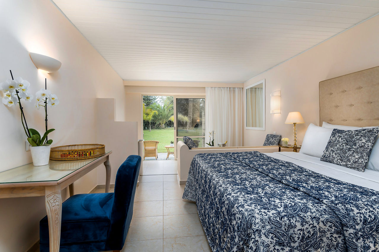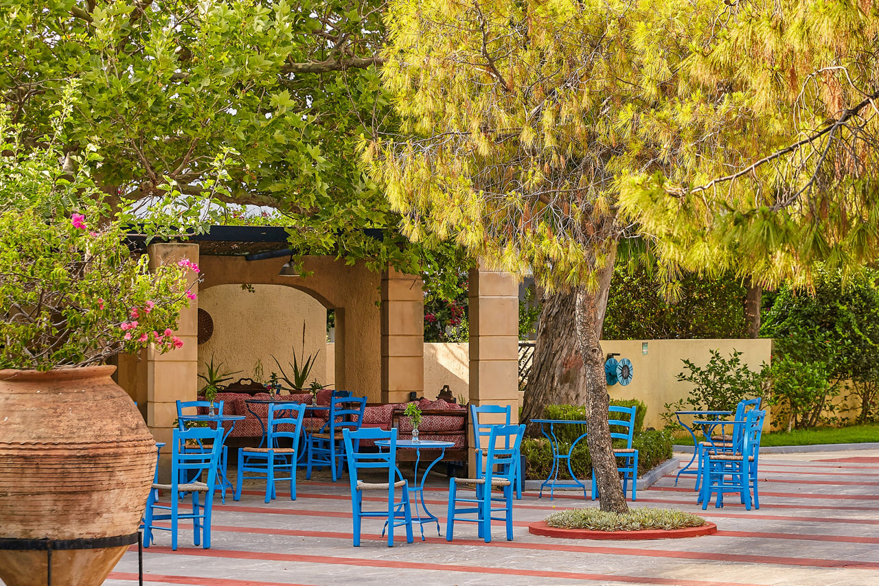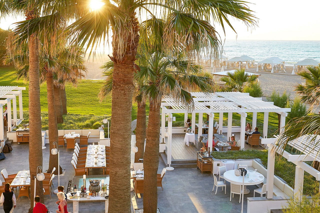 Located on a peaceful beachfront spot, the Grecotel Creta Palace offers plenty to please both couples and families. Days can be spent lazing around the large outdoor pool that?s centrally located within the complex. It?s surrounded by mature and pretty gardens, making this an ideal spot for relaxation. The kids will also love having their own pool that comes complete with a couple of waterslides for splashing around. Evenings can be spent in one of the hotels four restaurants and four bars, or for something a little livelier, Rethymnon resort centre with its Venetian Harbour and plethora of bars, cafes and restaurants is a short drive away.Location And Resort