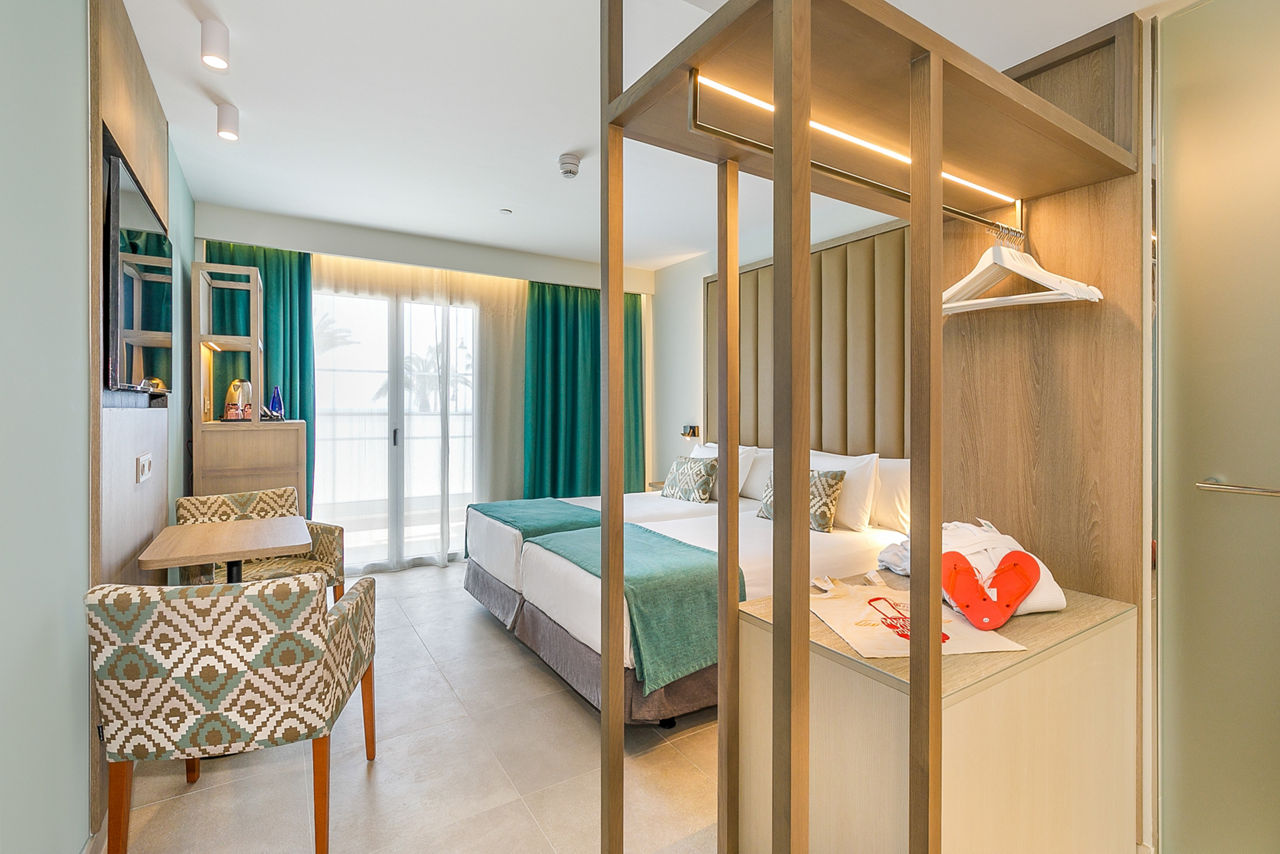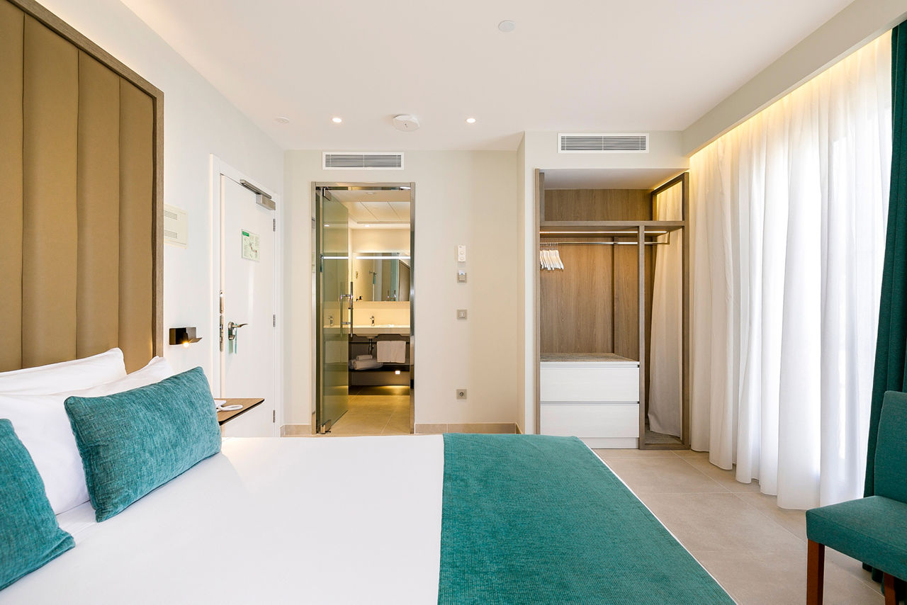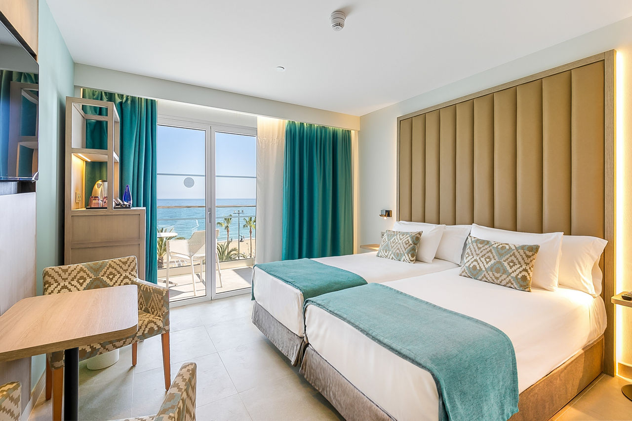 Double rooms sleep up to 2 adults and have bathroom containing a bath and separate shower, air conditioning, hairdryer, flat screen television, fridge and balcony or terrace. Double rooms with Sea View are also available.
