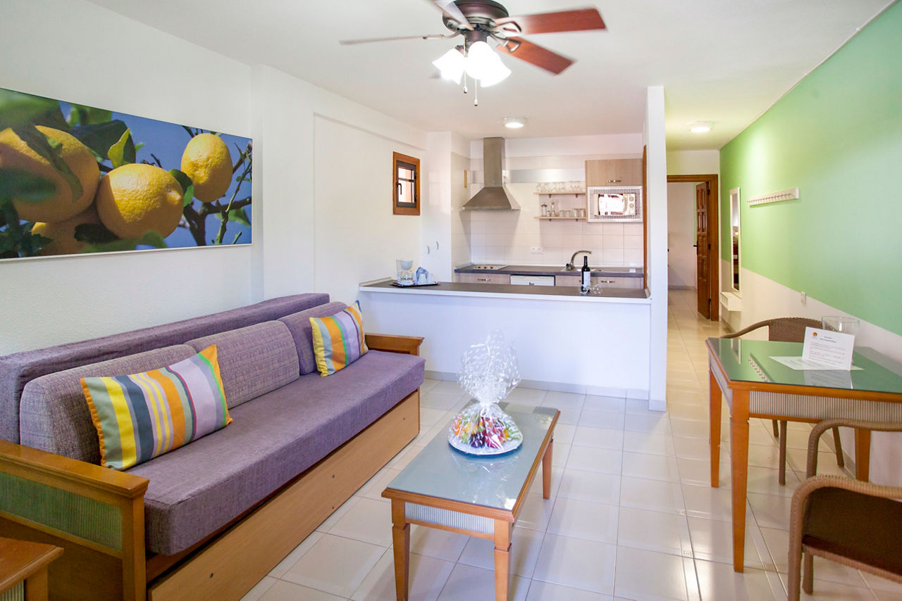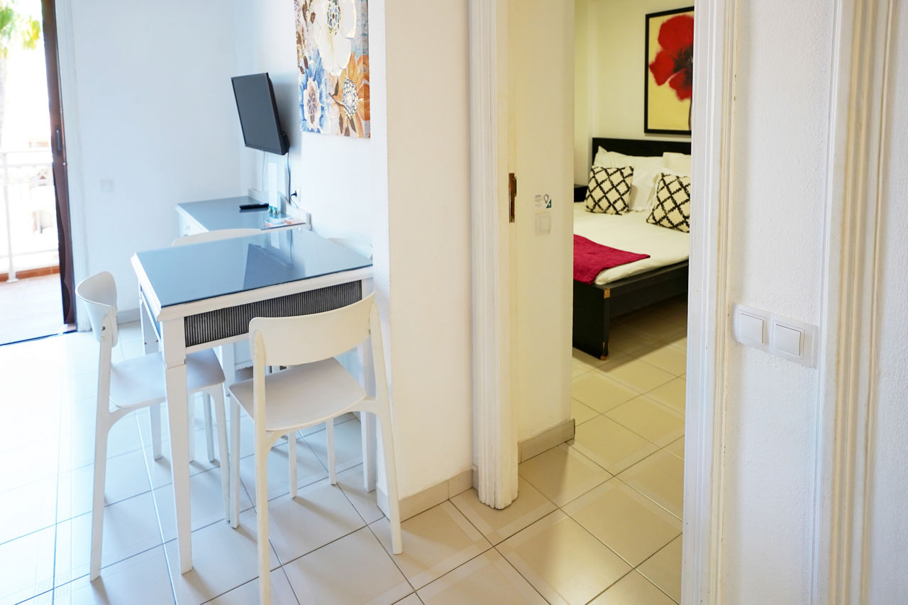 One Bedroom apartments sleep up to 3 adults and 1 child and have bathroom containing a shower, flat screen television, safety deposit box* double cooking ring, fridge, kettle, microwave, toaster, Wi-Fi* and balcony or terrace. Some apartments are of a duplex style. Room upgrade options are also available.