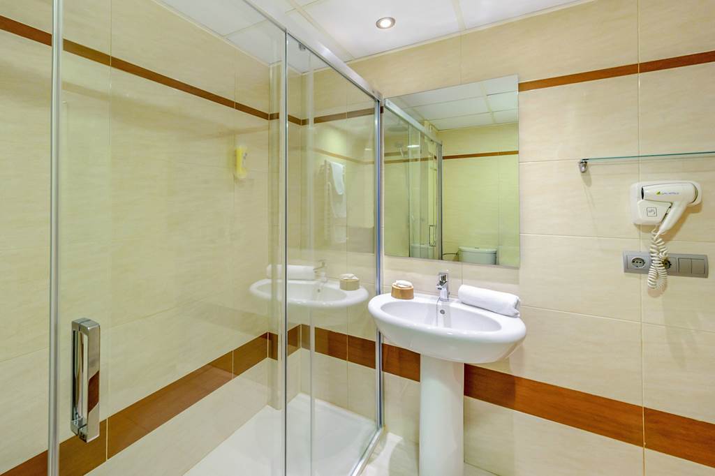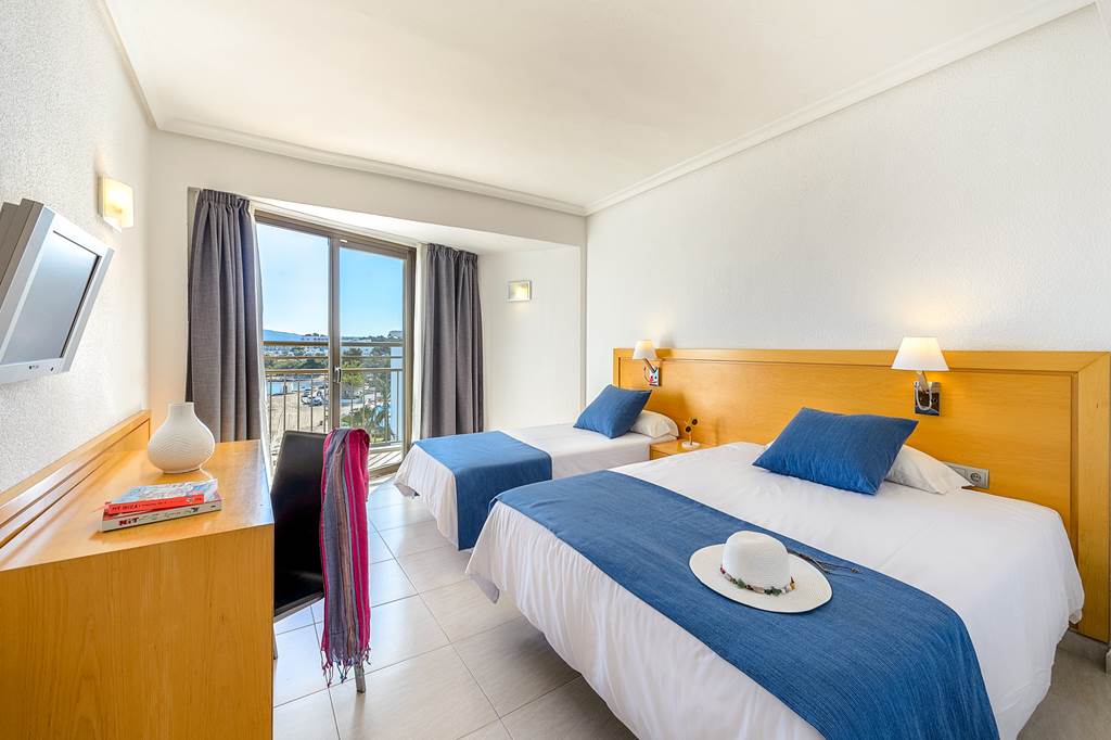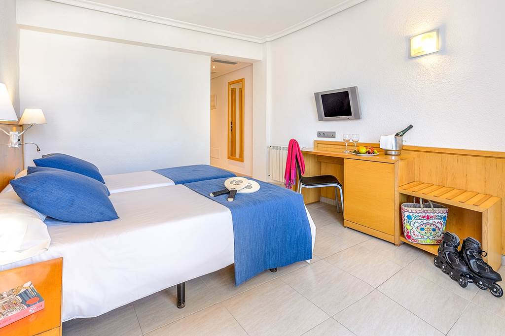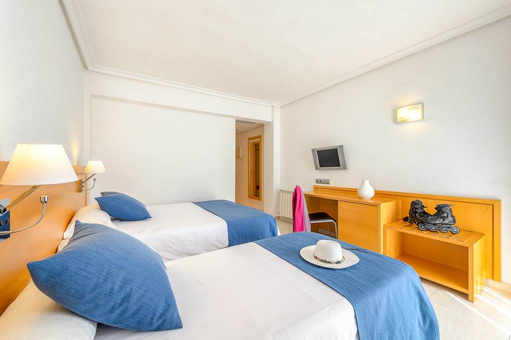 Twin rooms sleep up to 3 adults and have a bathroom containing a bath with shower attachment, hairdryer, air conditioning, satellite TV and balcony or terrace. Twin rooms with Sea View and Twin rooms for Sole Use are also available.