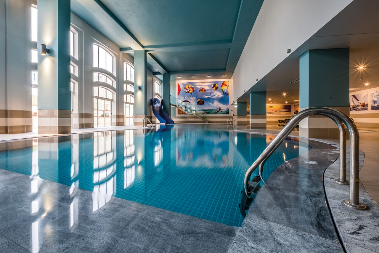 Swimming pool for adults and children. Indoor swimming pool.Flights