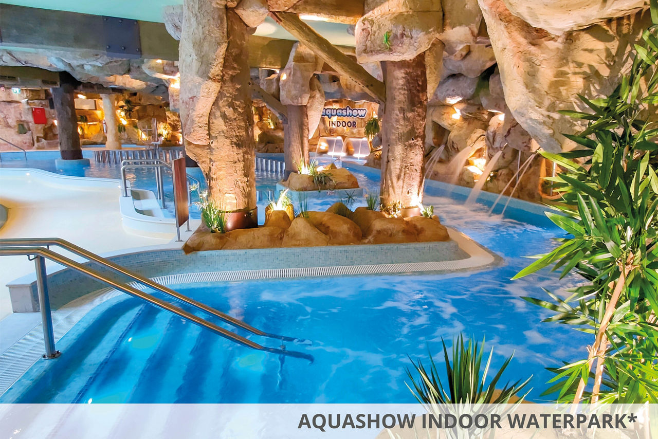 Gym*. Beauty treatments available*. Indoor play area (3-12yrs) - TV and movie area and soft play area. Children's playground. For all summer bookings (May-Sep) guests receive unlimited entry to the exciting Aquashow Waterpark and Theme Park. Experience slides, pools, waves, a 250m-long lazy river, exotic birds and Europe's biggest FreeFall water coaster with two slides both 32m high! There is so much fun to be had on this holiday with a difference!Swimming Pools