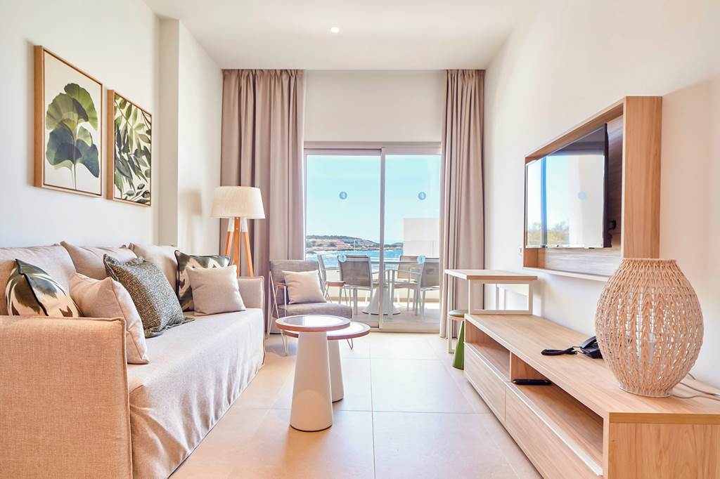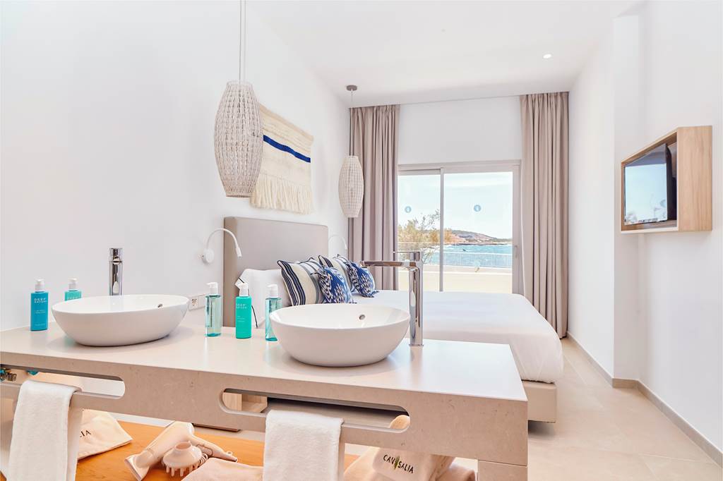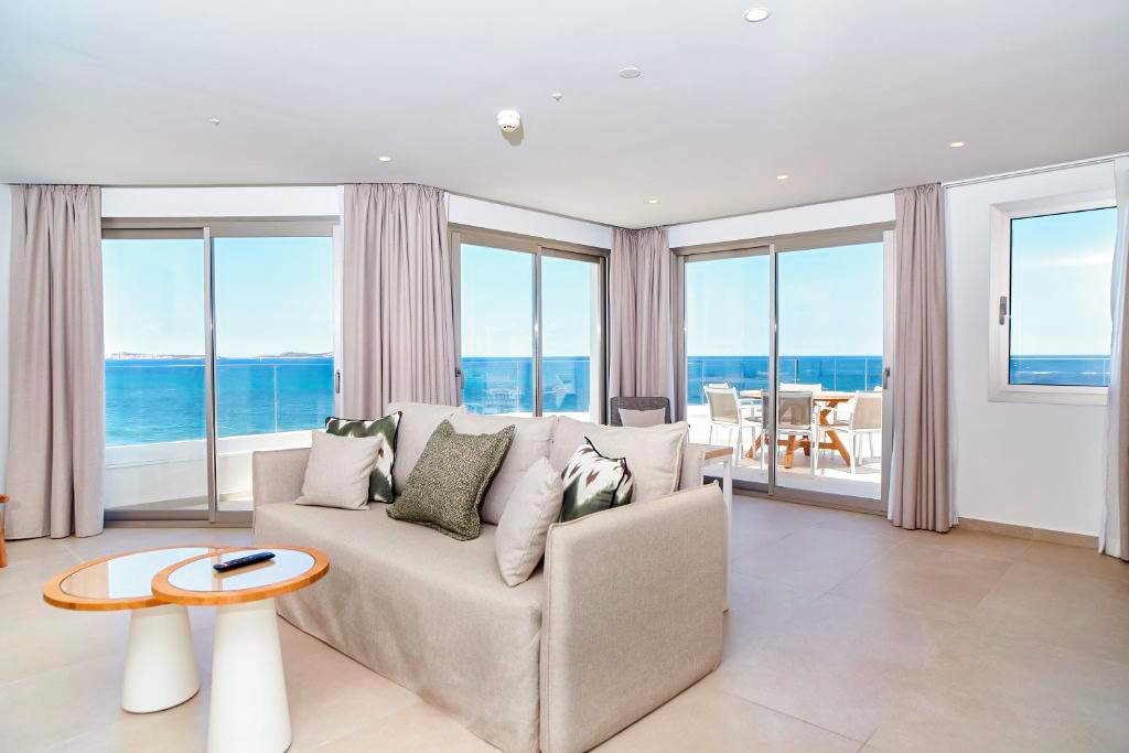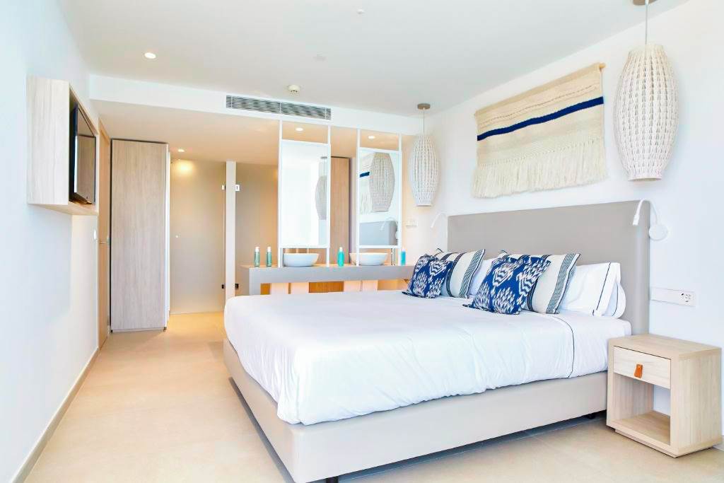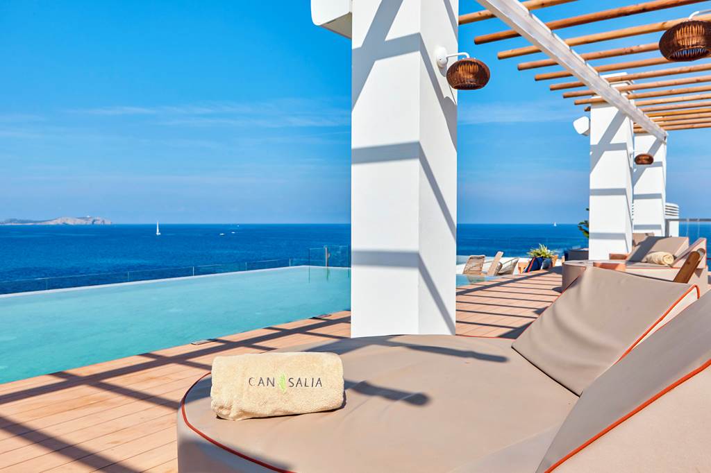 The Can Salia is a modern retreat located on the island's stunning western coastline, offering breath-taking views of the Mediterranean Sea amongst a peaceful atmosphere. Known for its contemporary design and emphasis on relaxation, the family-friendly hotel provides comfortable accommodation, rooftop infinity pool and easy access to the beach. With its focus on wellness, dining and Balearic style, Can Salia creates an ideal blend of tranquillity and vibrant Ibiza culture, ideal for couples and friends looking to explore the island's magic!One Bedroom suites with Sea View sleep up to 2 adults and have a bathroom containing a shower, air conditioning, hairdryer, flat screen television, kitchenette, fridge, microwave, kettle and balcony or terrace. Room upgrade options are also available.