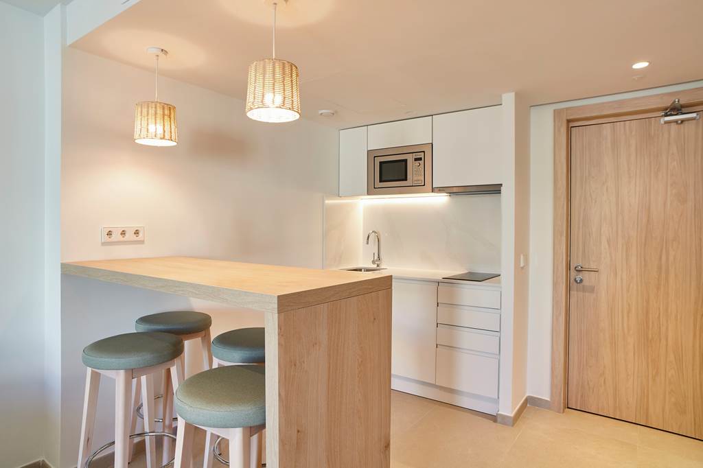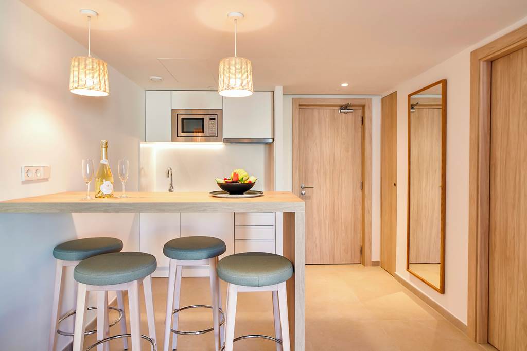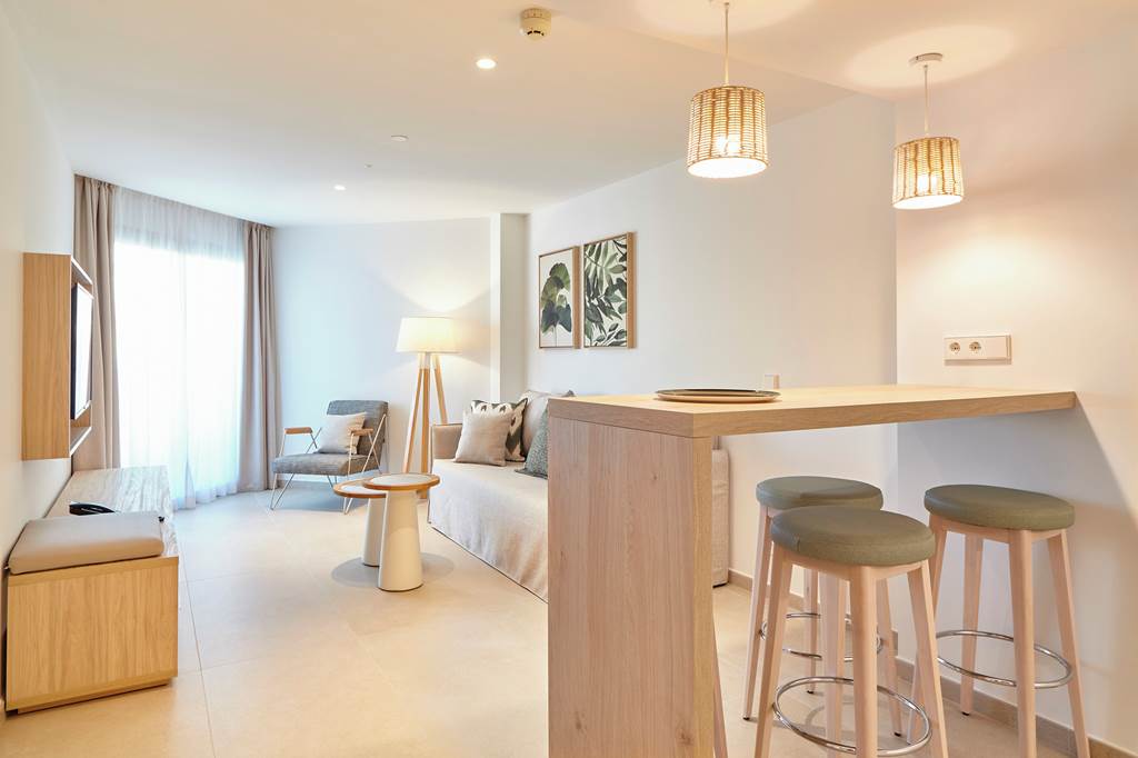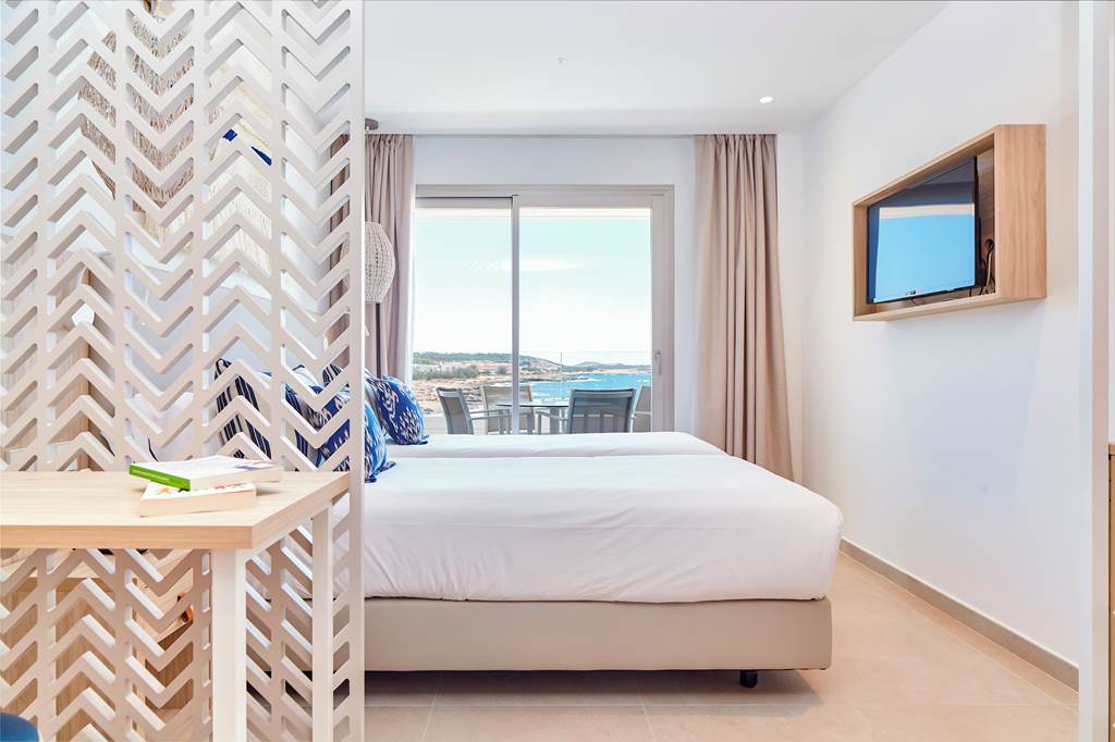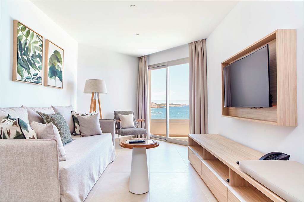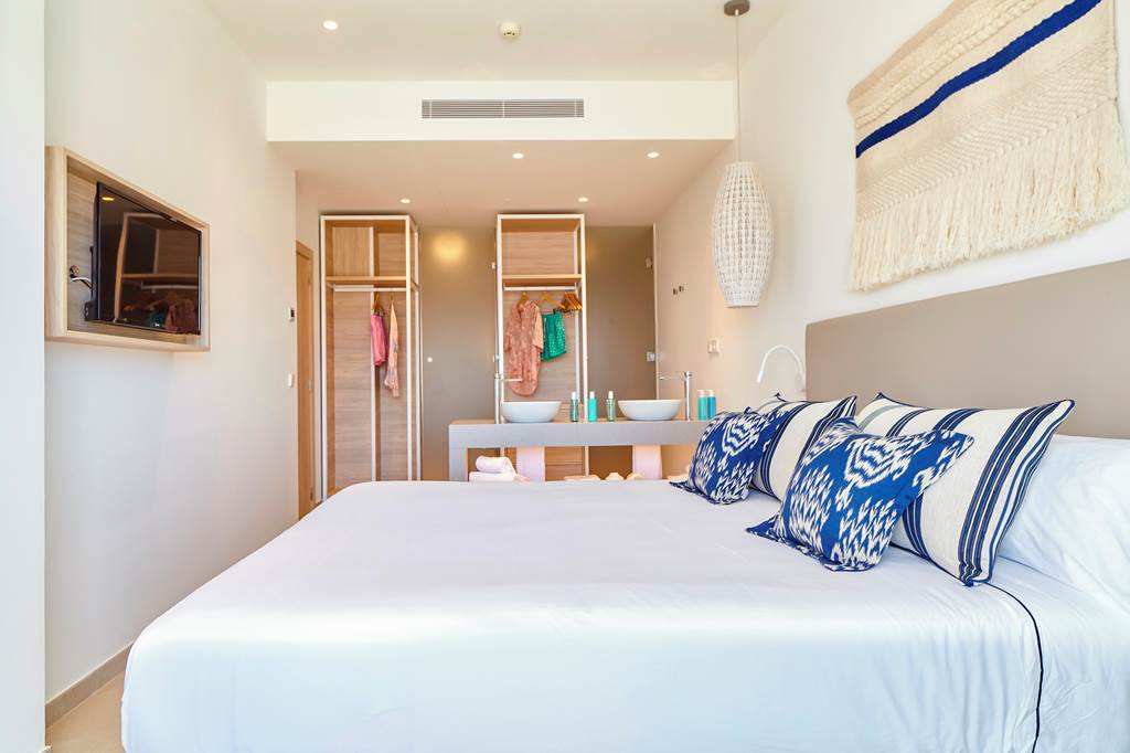 The Can Salia is a modern retreat located on the island's stunning western coastline, offering breath-taking views of the Mediterranean Sea amongst a peaceful atmosphere. Known for its contemporary design and emphasis on relaxation, the family-friendly hotel provides comfortable accommodation, rooftop infinity pool and easy access to the beach. With its focus on wellness, dining and Balearic style, Can Salia creates an ideal blend of tranquillity and vibrant Ibiza culture, ideal for couples and friends looking to explore the island's magic!One Bedroom suites with Sea View sleep up to 2 adults and have a bathroom containing a shower, air conditioning, hairdryer, flat screen television, kitchenette, fridge, microwave, kettle and balcony or terrace. Room upgrade options are also available.