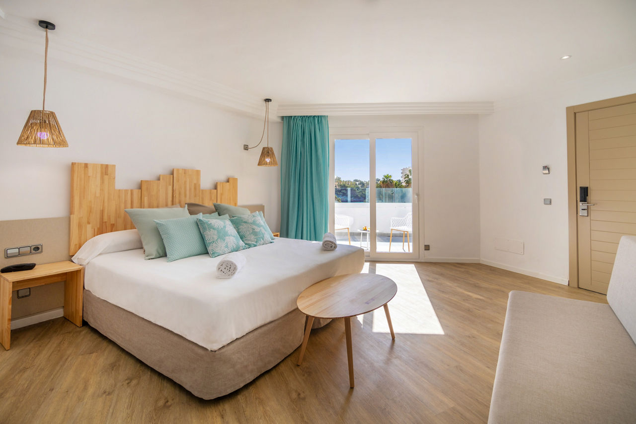 Perfectly positioned by golden sandy shores, MarSenses Ferrera Blanca Hotel is a fantastic choice for a fun-filled family holiday. This modern, white-washed retreat offers a welcoming, home-like atmosphere with all the comforts families need. Kids will love the splash park with mini-slides, while parents can relax by the two spacious pools. With a prime beachfront location and an excellent All-Inclusive package, this hotel is designed for effortless family enjoyment and unforgettable memories.Double rooms sleep up to 3 adults and have bathroom with shower, air conditioning, flat screen satellite television and balcony or terrace. Apartments have one bedroom and a separate living room with kitchenette. Suites have one bedroom and a separate living room.